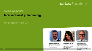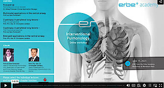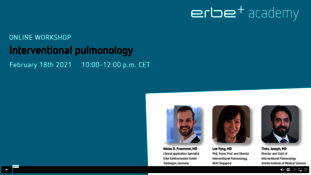 Recording from the Erbe Academy workshop at Wendisch Rietz on June 15, 2023. Learn more about: Erbe technologies in IP, multimodal applications in the central airway, diagnostic applications in the peripheral lung and emergent central airway conditions. It includes lectures from our recent Erbe Academy's course on Interventional Pulmonology held by Dr. Niklas Frömmel (Clinical Application Manager at Erbe), Prof. ssa Sara Tomassetti (University Hospital Florence), Prim. Priv.-Doz. Dr. Christopher Lambers (Ordensklinikum Linz). Whether you missed the course or want to rewatch presentations, the Workshop on demand is a convenient platform.